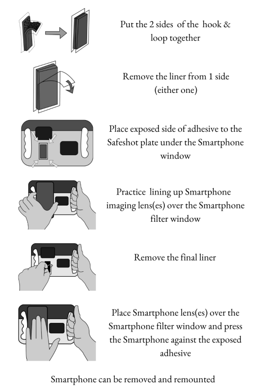 Step 3) Apply adhesive and mount your smartphone to the Safeshot plate.